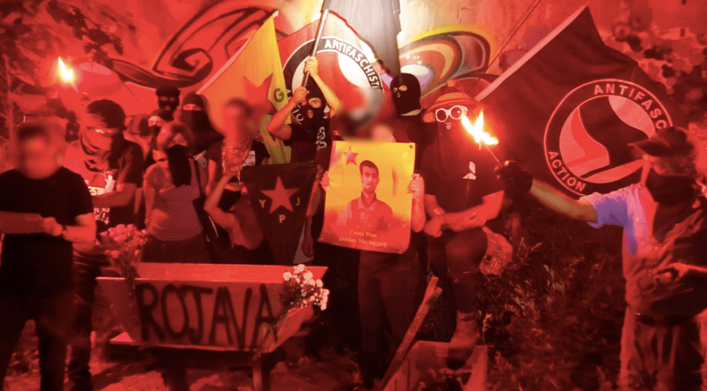 Kansainväliset anarkistiset, sosialistiset ja kommunistiset vallankumoukselliset osallistuvat parhaillaan aktiivisesti kamppailuun Rojavassa. He toimivat kansalaistasolla, osallistuvat militioihin, kirjoittavat raportteja kotona oleville ja toimittavat varusteita. Tällaisten toimijoiden välillä ulkomailla ja kotona on vähintään olemassa liittouma. Matkustamalla vaaralliseen sijaintiin, riskeeraamalla usein elämänsä osallistumalla taisteluihin, nämä toverit ovat osoittaneet olevansa sitoutuneita projektille. Näiden taistelijoiden palatessa kotiin, he voivat laittaa tietonsa käyttöön edistääkseen täällä käytäviä kamppailuja.