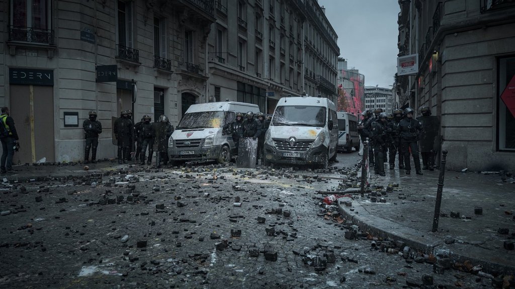 Ranskalaisella Lundi Matin -sivulla julkaistu kirjoitus käsittelee Keltaisten liivien liikettä (ransk. Mouvement des gilets jaunes), joka sai alkunsa polttoaineiden hintaa nostavan verokorotuksen vastaisesta protestista 17.11.2018. Liike laajeni nopeasti järjestelmäkriittiseen suuntaan, ja sillä ei ole enää juuri mitään tekemistä polttoaineveron kanssa. Lauantaina 1.12. mielenosoitukset eskaloituivat laajamittaiseksi mellakoinniksi ympäri Ranskaa. Tämän jälkeen vihattu ”rikkaiden presidentti” Macron taipui protestoijien edessä ja peruutti 4.12. verokorotuksen, mutta kapinointi on tästä voitosta huolimatta jatkunut. Jopa Ylen toimittajaa Pariisissa kommentoi verokorotuksesta luopumista: ”Liian vähän, liian myöhään.” Tätä suomentaessa keltaliivit jatkavat neljättä lauantaina Ranskan instituutioiden huojuttamista.