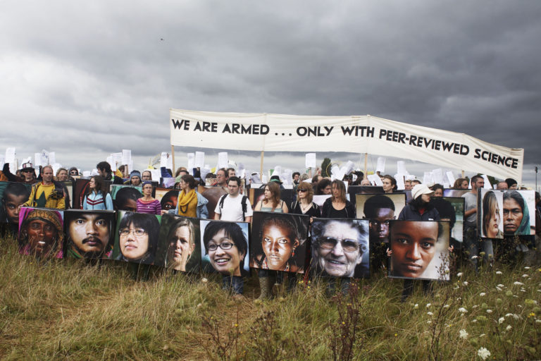 Kuten varmasti tiedätte, Yhdistyneiden kansakuntien tutkijat kertovat meillä olevan 11 vuotta aikaa vähentää päästöjämme. Iässäni, olen ollut suoran toiminnan liikkeistä neljännesvuosisadan, 11 vuotta kuluu nopeasti. Itse asiassa 11 vuotta sitten vuonna 2007 olin mukana tuhaninsien muiden kapinallisten kanssa valtaamassa juuri Heathrown kolmannen kiitoradan aluetta. Pidimme toisen ilmastoleirin siellä. Se oli epätavallista: telttameri, sirkusteltat, tuulivoimalat ja aurinkopaneelit, olivat voimakas kontrasti taustalla karjuviin lentoon lähteviin lentokoneisiin. Tämä oli prefiguratiivinen väliaikainen yhteisö, jonka muodostivat kiitorataa vastustavat paikalliset ihmiset, joiden talot oli määrä tuhota, ja radikaalit ympäristöaktivistit ympäri maata ja kauempaa. He nostivat kolmannen kiitoradan maailman mediakartalle. BAA yritti määrätä meille kiellon mennä leirille. Kävi kuitenkin ilmi, että he olivat kieltäneet kaikkia ryhmiä menemästä paikalle, jotka liittyivät Ilmastoleiriin. ja yksi niistä ryhmistä oli RSPB (Royal Society for the Protection of Birds [suom. Kuninkaallinen lintujensuojeluyhteisö]) ja koska Englanin kuningatar oli sen suojelija, myös hänet oli estetty menemästä Heathrown lentokentälle Ilmastoleirin aikana! Kiellolle viitattiin kintaalla, ja samalla tavalla tehtiin poliisin yrityksille käyttää meihin terrorismilakeja. Suljimme brittiläisten lentokentistä vastaavien viranomaisten päämajan päivän ajaksi ja sadat ihmiset saivat elämänsä ensimmäisen kokemuksen tottelemattomuudesta.