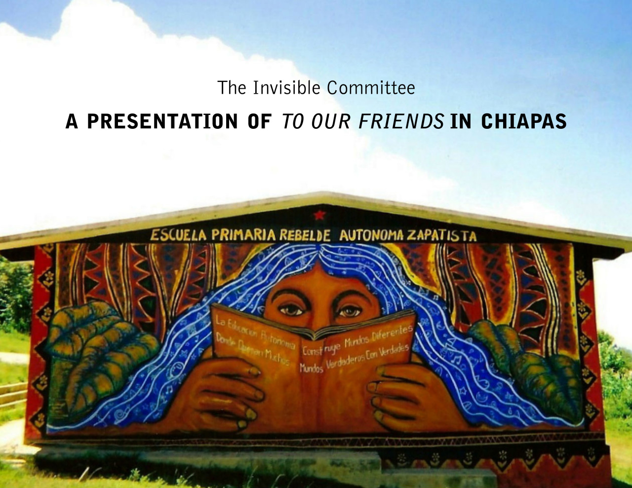 Tämä on puhtaaksi kirjoitettu versio A nuestros amigos -kirjan esittelystä [suom. huom. teos on käännetty kokonaan suomeksi nimellä Ystävillemme], joka pidettiin 22. lokakuuta 2015 CIDECI-UniTierrassa (San Cristóbal de las Casas, Chiapas). Tapahtuman järjestivät ranskalaiset, katalonialaiset ja meksikolaiset toverit, jotka olivat auttaneet espanjankielisessä käännöksessä ja julkaisseet kirjan vuotta aiemmin. Esitelmän kiinnostavuus piilee sen ytimekkyydessä ja paikallistetuissa huomioissa siitä, miten Näkymättömän komitean käsittelemät strategiat saattaisivat resonoida Meksikossa meneillään olevien vallankumouksellisten prosessien kanssa.