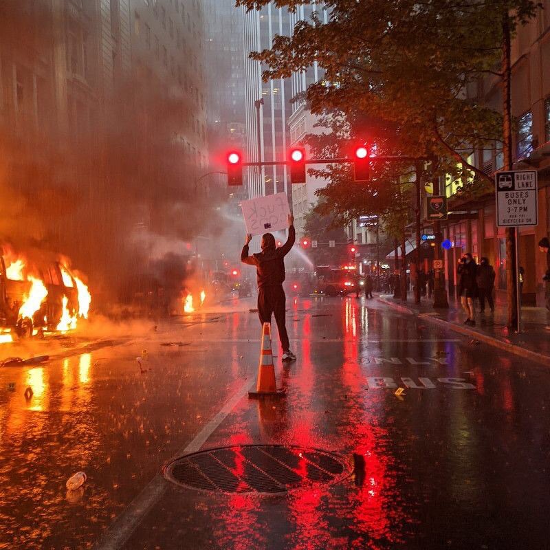 Tämä on myös ensimmäinen kerta modernin Amerikan historiassa, kun poliisiasema on vallattu, tuhottu, ryöstetty ja poltettu. Meillä on siis nyt todellinen ja konkreettinen mahdollisuus pakottaa poliisiasemat antautumaan, ja tämä on jotain täysin uutta. Samana iltana Valkoisen talon aidan läpi murtauduttiin, mikä on luultavasti myös ennenkuulumatonta. Emme tiedä mitä tapahtuu seuraavaksi, on todella vaikeaa sanoa jotain asiasta.