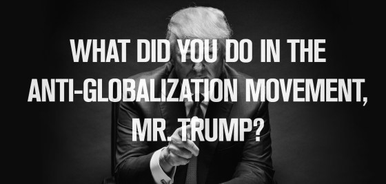 Herra Trump, on ollut todella yllättävää kuunnella presidentinvaalikampanjassa käyttämääsi kieltä: globalisaatio on paha asia, haluat mieluummin reilua kauppaa kuin vapaakauppaa ja maailmanlaajuiset eliitit ovat kimpussamme. Viimeksi kuullessani tällaista retoriikkaa olin piiritetyn kokoontumiskeskuksen sisäpuolella valmistautumassa poliisin rynnäkköön.